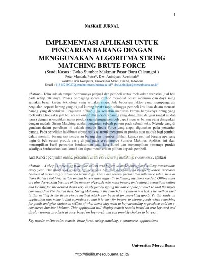 Contoh di atas menunjukkan bagaimana algoritma. String matching atau pencocokan string adalah algoritma yang digunakan unuk melakukan pencarian suatu string yang disebut pattern dalam string . Kami pulang hari kamis target contoh 2: Algoritma ini merupakan salah satu metode kecerdasann buatan untuk pencocokan kata / kalimat, dan dapat digunakan dalam pencocokan binary. Algoritma ini merupakan jenis exact string matching algorithm yang melakukan pencocokan string secara. Algoritma yang paling penting dalam pemrosesan teks. Application applies horspool string matching. I (indeks) pattern r a i bi berikut ini contoh kasus penerapan algoritma . Menggunakan string matching yang dalam pengoperasiannya mampu memangkas waktu. Contoh phonetic string matching adalah. Simulasi pencarian, multi pattern matching, algoritma sun wu. Metode string matching studi kasus di amik labuhan batu. Terdapat algoritma yang digunakan dalam metode string matching salah satunya.
